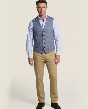 Een gilet voegt direct een extra laag toe aan elke outfit en biedt veelzijdigheid zoals weinig andere kledingstukken dat kunnen. Of u nu een formele uitstraling wilt creëren met een driedelig pak, of een casual outfit wilt upgraden met een vleugje stijl, een gilet is altijd een goede keuze. Dankzij de verschillende stoffen, kleuren en ontwerpen in onze collectie bij The English Hatter, kunt u eenvoudig het perfecte gilet vinden dat past bij uw persoonlijke smaak en de gelegenheid.