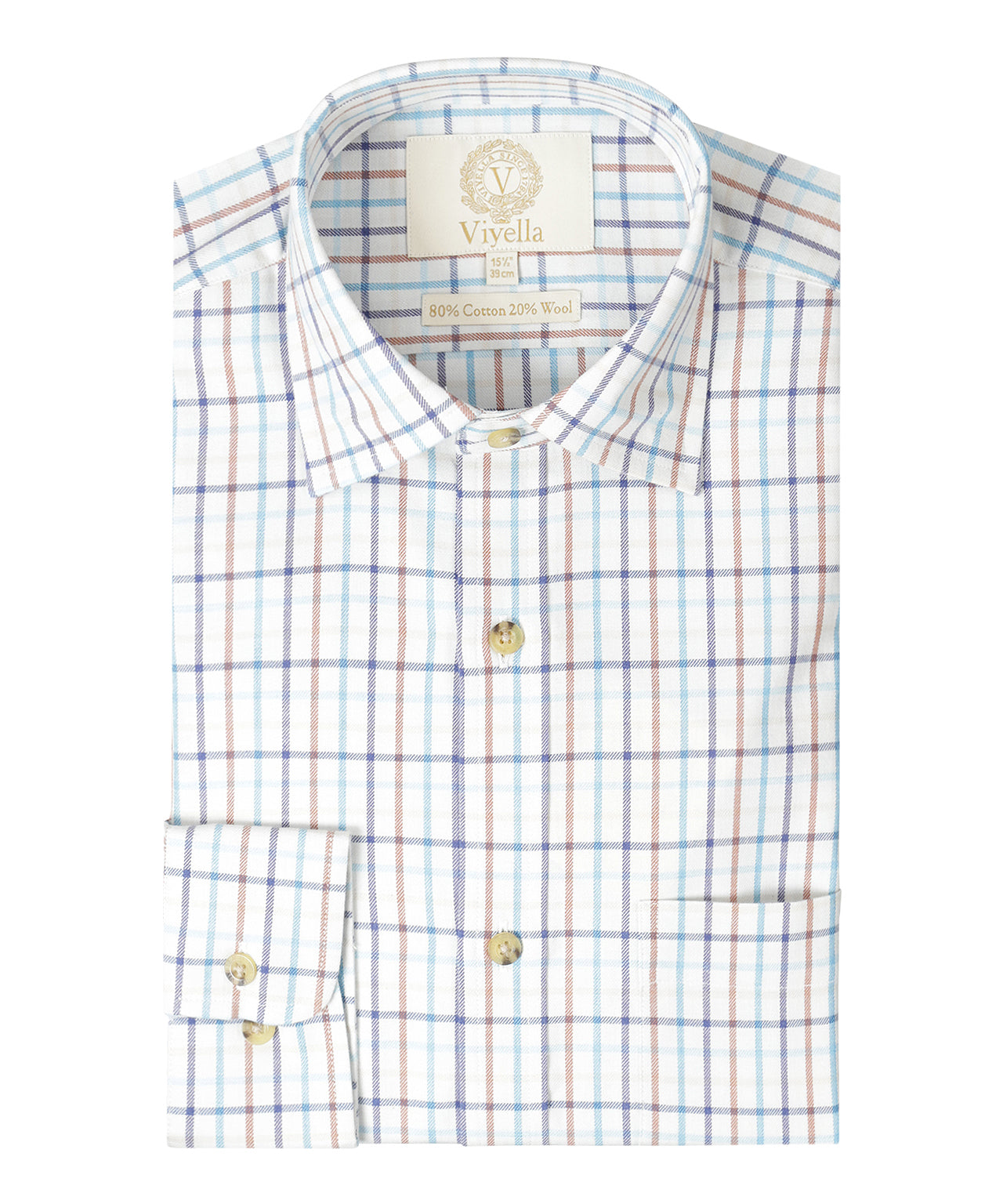 Viyella shirt gemaakt van 80% katoen en 20% wol, voorzien van een klassiek boord en een borstzakje.